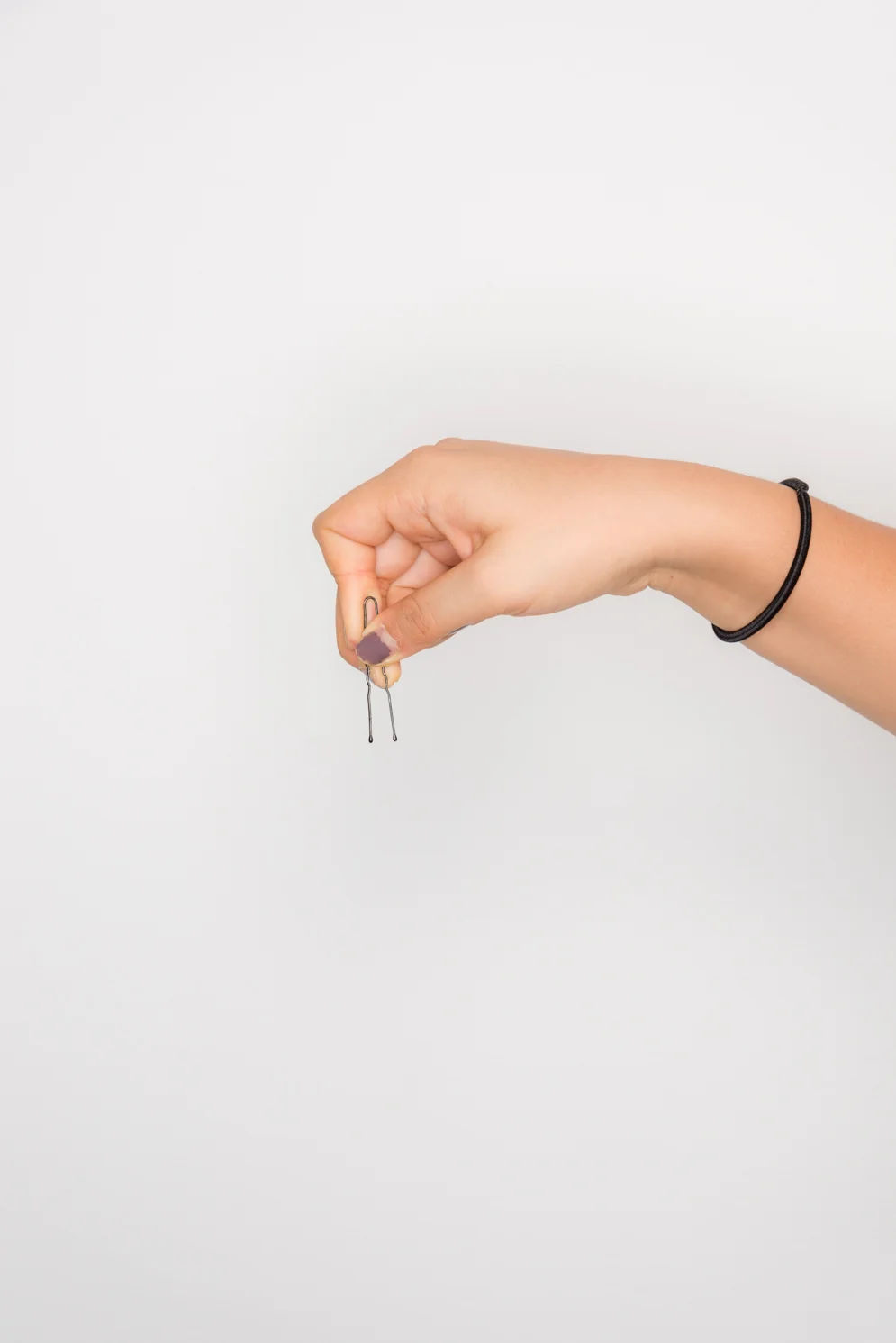 10. Uピンの使い方は、指で少しピンを開いて使用する。このブログでは普通のUピンを使用しましたが、ヘアアレンジ初心者の方へは、Magic grip hair pinsが使いやすくおススメです。