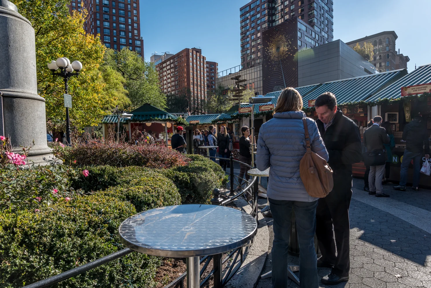 /Time flies! The Union Square Holiday Market is here already. I love the market because I can find something interesting and unique. There are also yummy small food vendors in the market. If you are looking for a unique gift this holiday season,. check out The Union square Holiday Market. New things in the market this year is an area near the food vendors with small little-standing cafe tables with electric heaters. Winter in New York City can be freezing, I remember times when I was eating something in the market freezing cold, but with this table and heater, people can hang out more comfortably. This is a really great addition to the market. The market is open until December 24th 2015. The market at night time is very beautiful and magical. We took some beautiful photographs of the market at night last year. You can view it from here.