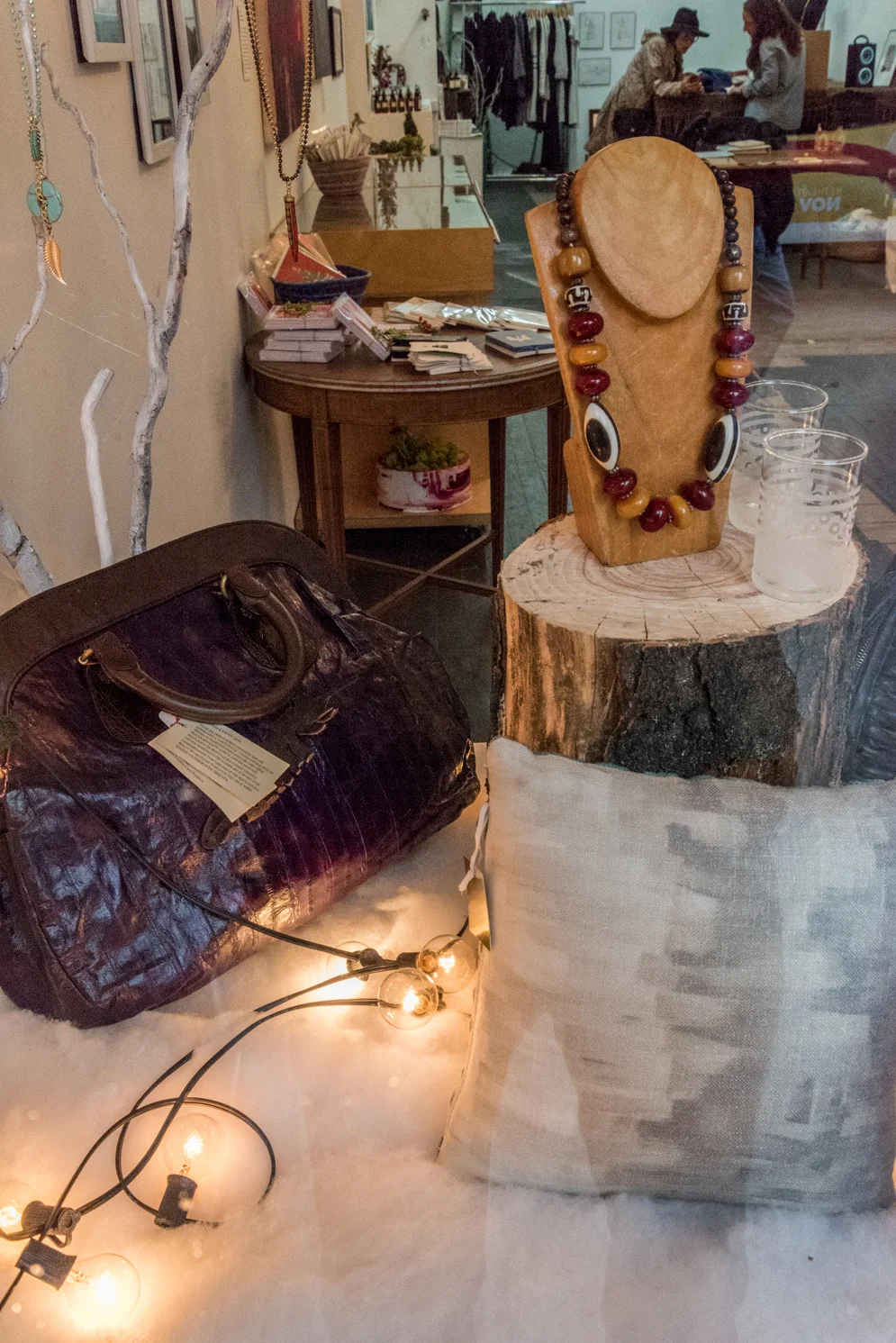 /Hello, do you have plans this weekend? Holiday shopping? If you are looking for something rare and unique gifts from NYC, I know great place to go. It is called Lower East Side holiday pop up store located at 365 Grand street at Essex street. You can find many cool hand made art pieces like painting, photography, ceramic, jewelry, clothing, bags and more from directly from local artists. Many of the artists who sell their art in this pop up store don't have a store or online shopping website. You can get rare and special things only in this store until December 24th. I picked some affordable and stylish items from this store. In the photos above, all jewelry and hand bags I tried on are under $50 each. Let's find that special gift for someone special, and include yourself at the Lower East Side holiday pop up store.