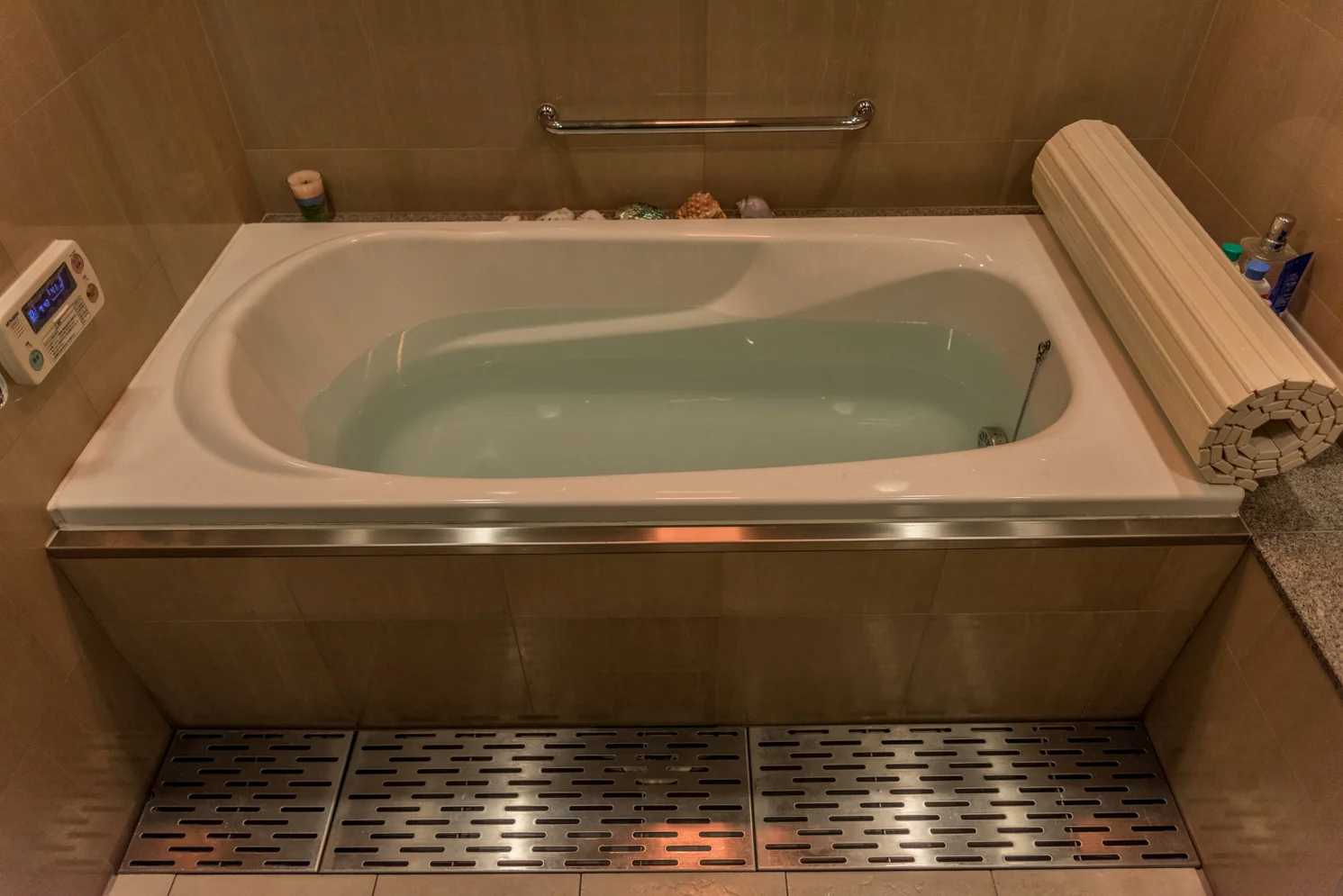 /I left Japan 17 years ago, back then, baths in Japan were not as convenient as they are now. Currently, certain baths in Japan can prepare itself. You select the temperature you would like for the water, and press the add water button. The bath will fill with water and when the water temperature is ready, you will be told by a recorded voice that " Your bath is ready."
