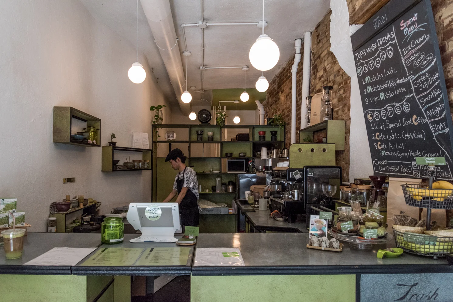 ニューヨークで今、抹茶が密かなブームになりつつあります。抹茶をたてて飲む方も中にはいるだろうけど、ニューヨークでは抹茶ラテが人気。でも、まだまだ抹茶をメインにしているカフェは少ないんですが、我らの愛する地元 The East village に抹茶を専門にしているMatcha Cafe Wabiが去年の暮れにオープンしました!Matcha cafe Wabiは、抹茶を使用した様々な美味しそうなドリンクや、手作り抹茶スウィーツがぎゅっと詰まった可愛いカフェ。お店のスタッフ、Yujiさんと、Ayakaさんはとてもフレンドリーで、この夏におすすめのアイス抹茶カフェラテをおすすめしてくださいました。抹茶カフェラテは、抹茶とコーヒーが一緒になった一度で二度美味しいドリンク。色も二層になってとても綺麗だしミルクが多すぎなくいい感じの大人のラテ。Matcha Cafe Wabiとっても気に入りました!お店のスタッフAyakaさんにThe East villageのおススメのお店情報を仕入れました!詳細は下記です。みんながまだ知らなかった新しいお店を知る事が出来るかも!おたのしみに:)