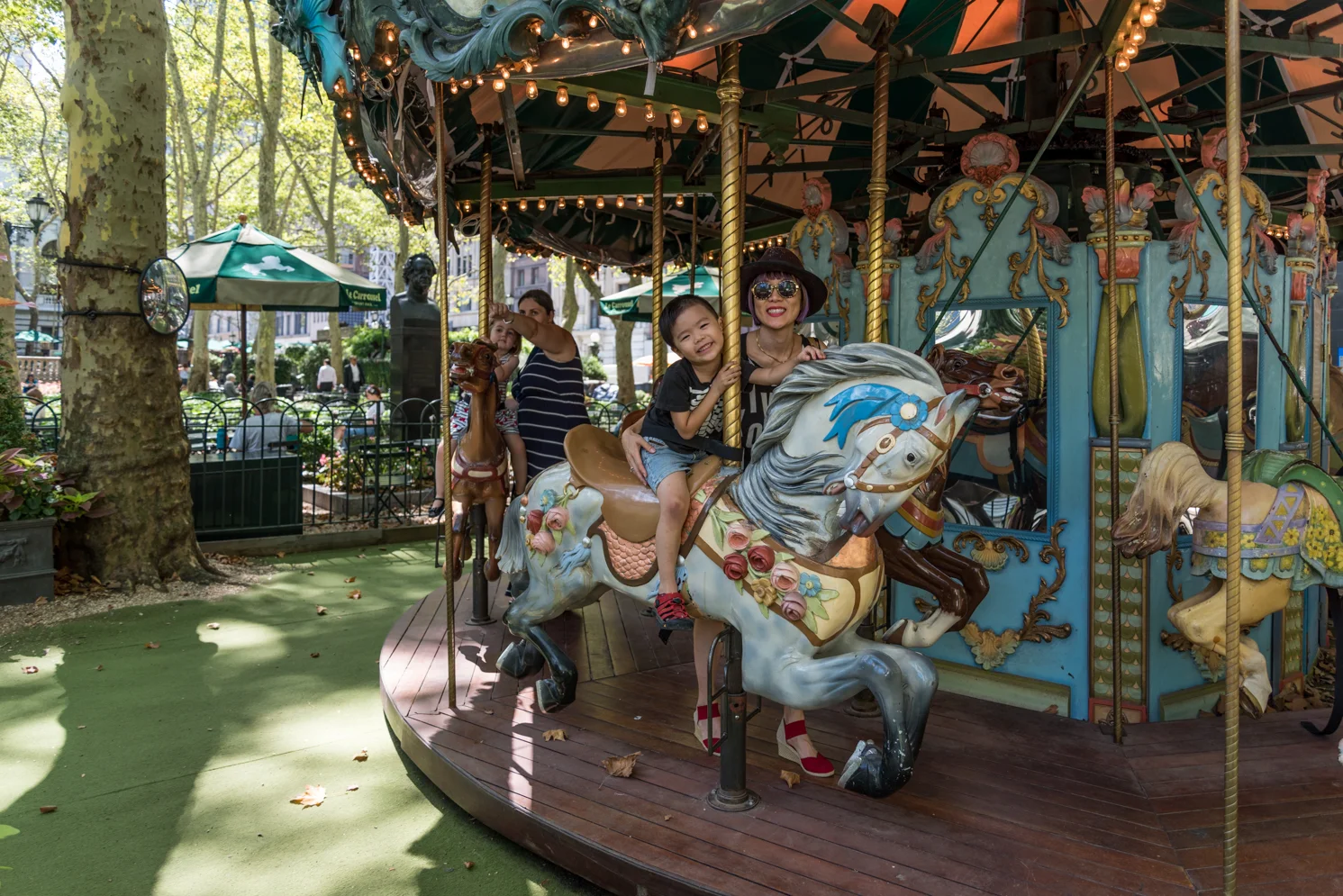 /One of the many reasons I love NYC is that there are many nice parks in the city, and you can walk from one park to another. Since I have a child, I started to go to parks often. Bryant Park is one of my son's favorite park because they have a carousel, a book stand for children, board games, mini golf and more. The park has so many activities for children and adults. Concerts, movies in the park during summertime, Ice skating during the winter time. Good programs and activities all year around in Bryant Park.