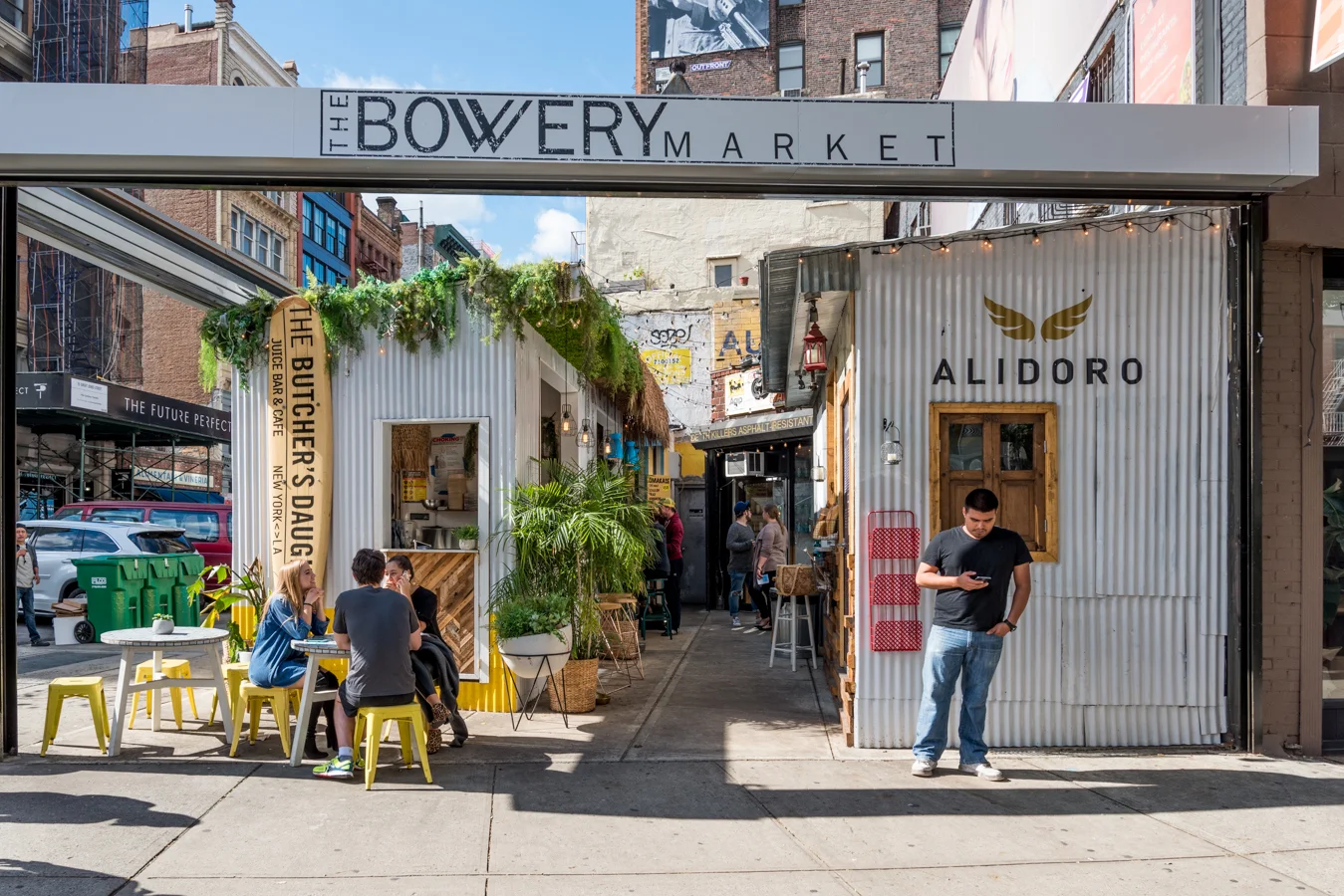 日本にはフードコートって多いですが、ニューヨークにはそんなに多くはないですが、最近新しくオープンしたフードコートはおしゃれで本格派。今日は、マンハッタンで私の大好きなエリア、イーストビレッジにこの夏新しくお目見えした野外フードコートBowery Marketをご紹介したいと思います。場所は、おしゃれなトレンディーホテルBowery Hotelの目の前。ベンダーは5件のみに可愛いおしゃれなフードコートです。中はとにかく可愛いから、いつもセルフィーや写真を撮っている人達でいっぱいです。あるお天気が良かった週末に家族でブランチに行きました。ニューヨークで大人気なヘルシーベジタリアンレストランTHE BUTCHER’S DAUGHTERのベンダーから、アボガトトーストとマンゴースムージーをいただきました。どちらも新鮮な野菜をシンプルに調理しただけなのに美味しかった。やはり新鮮で高品質のものはシンプルに調理するのが一番ね。お天気の良い日はイーストビレッジを散歩してそして、Bowery Marketでランチをするのはいかが?