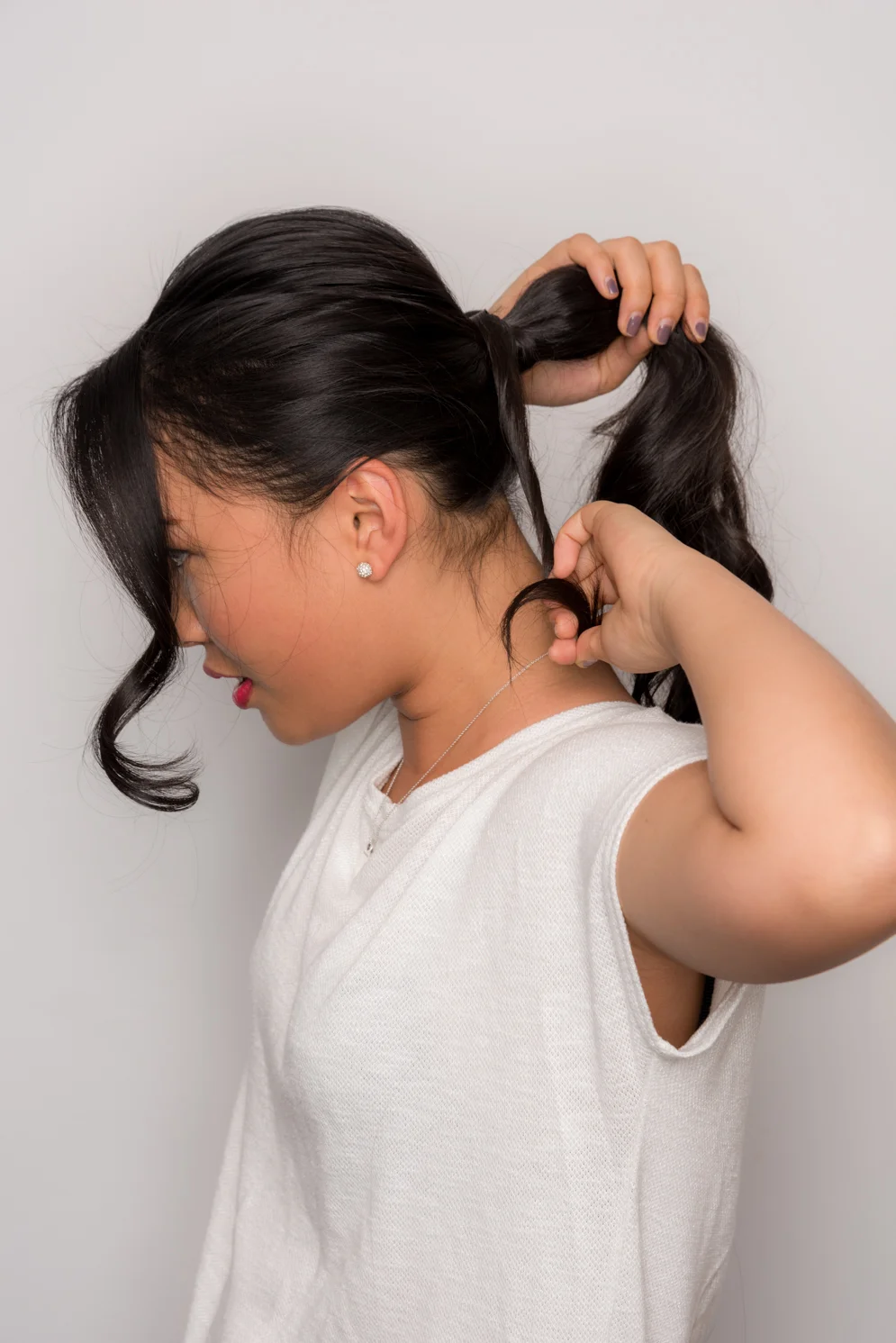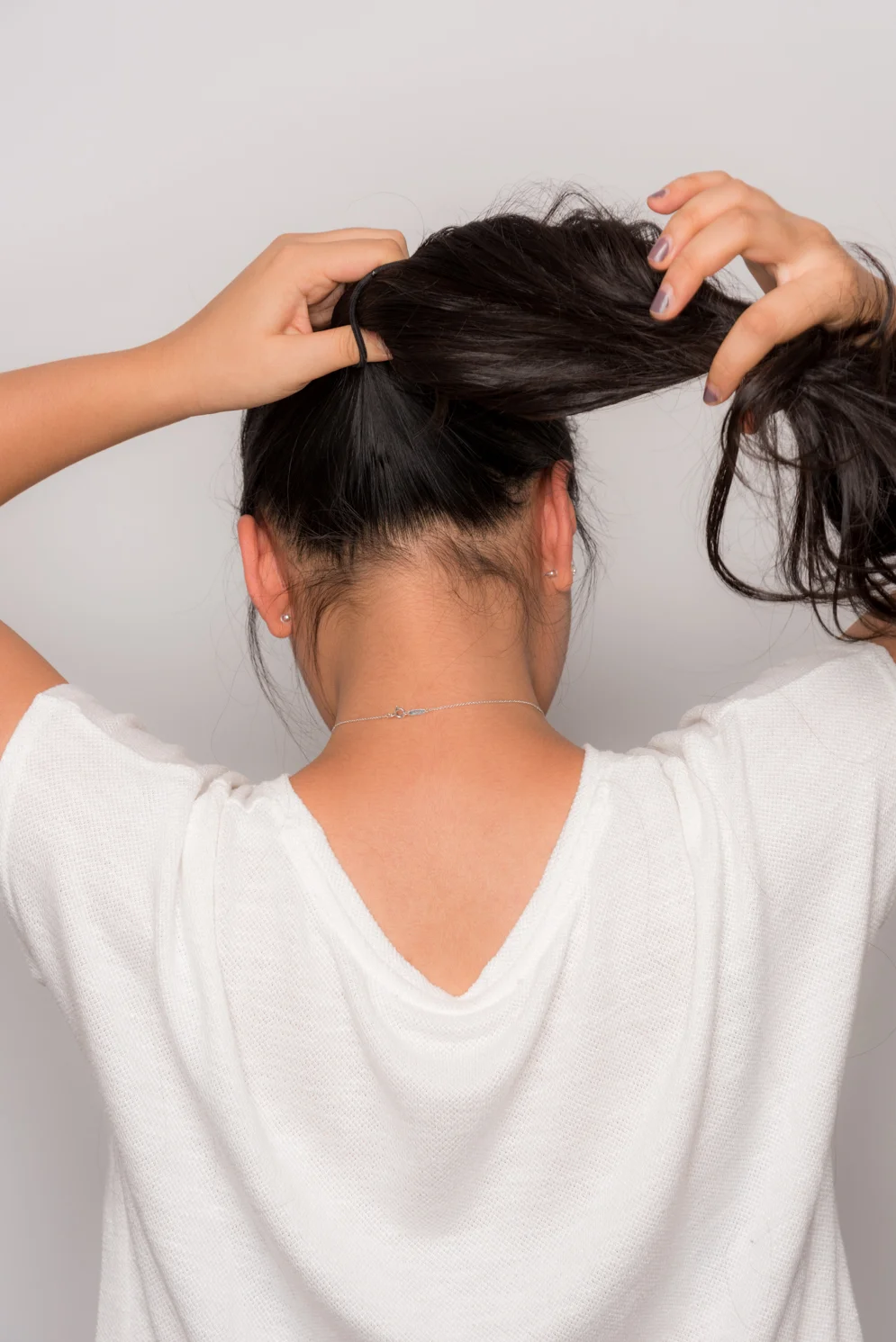 3. Grab your hair at the hair band part and pull your hair up from the top of your hair to make it look softer, and create some height on the top of your head.