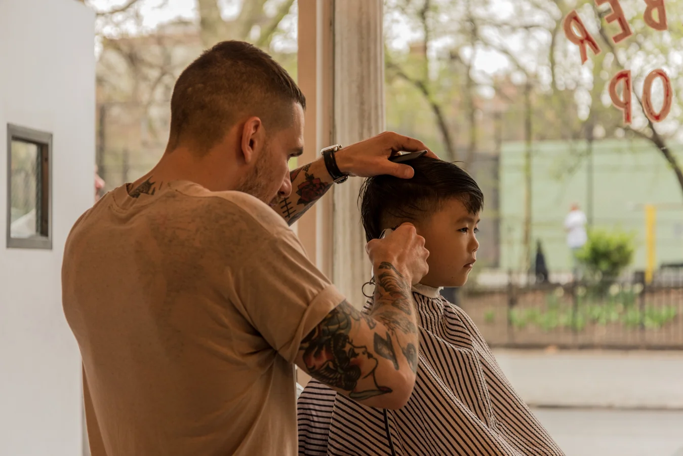/One cold winter day, my son and I were in front of the Blind Barber Shop in the East village waiting for a bus. Rob, who is head barber at The Blind Barber Shop welcomed us inside the barber shop and let us wait for the bus to come. Since then, Rob is my son's super hero. The Blind Barber is a very cool and unique shop. They have 4 locations in the United states, LA, NY, Brooklyn, and inside Barney's. Every barber shop except Barney's has a bar at the back space of the barber shop, and you can a get drink with a haircut, how cool is that! They usually don't take children for haircuts because of the bar, but a few days ago, my son got a special treat haircut from his favorite friend Rob. It was my son's first time to get the barber shop experience. Rob gave him a very cool asymmetrical undercut and styled him using 90 proof hair pomade by The Blind Barber Shop. I actually got this pomade and am using it for my clients at the salon where I work, and I love it! It will hold coarse hair very well yet, not so heavy. My son had a great experience at The Blind Barber Shop. I love this shop, everyone who works there is very friendly, kind, and welcoming. I love their concept and vision. My son is already telling me that, he wants to work at The Blind Barber Shop. Rob, Edward Tricomi, and I will teach my son how to cut hair:)