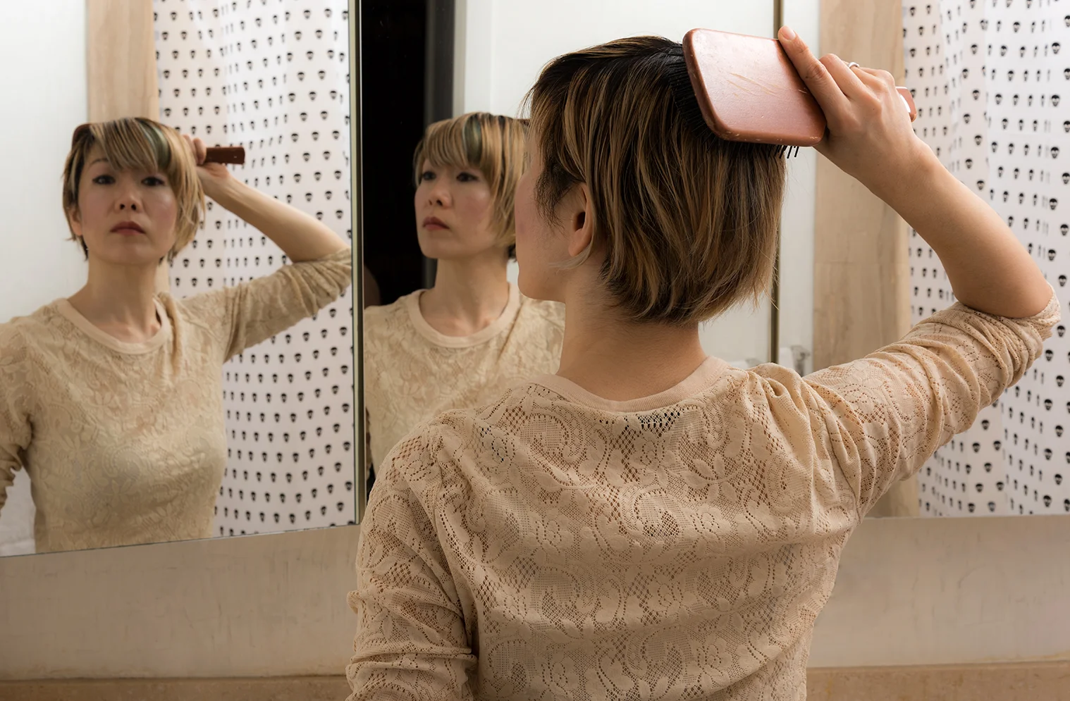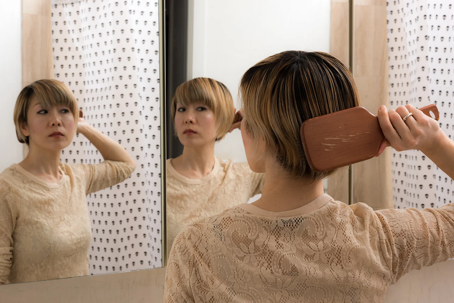 3. ブラシまたは、コームを使って、髪の湿り気を均一にする。