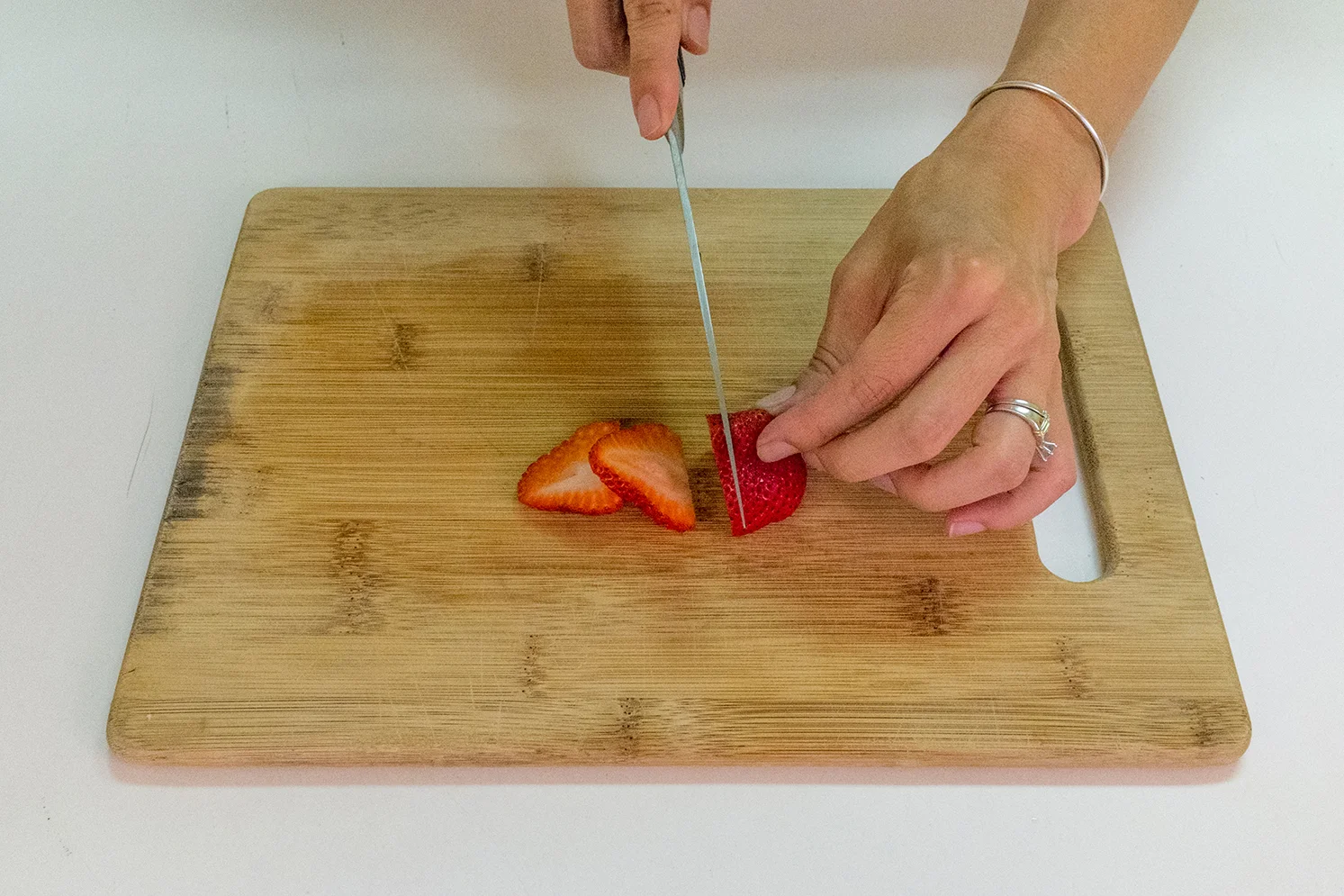 1. Cut the strawberry into thin slices. Pre-heat oven to 425F.