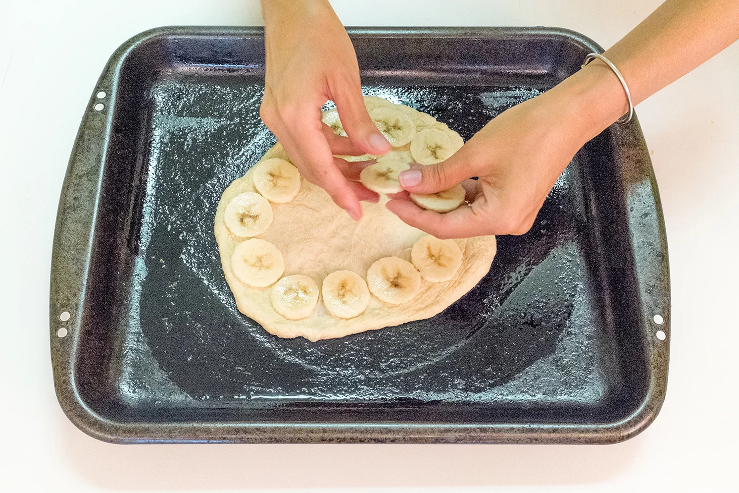 Super easy, simple and delicious! I wanted to make a fruit custard pizza, but I wanted to make it quick, simple and healthy. So, I used sliced banana on the pizza dough. Cooked banana tastes and the texture is like custard. Also, the fruits become more sweet and juicy when cooked. You can eat the delicious fruits on the crispy pizza! Sound's good, right? :) Please try to make one!
