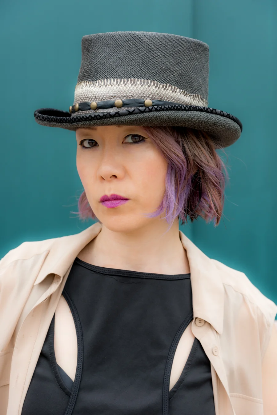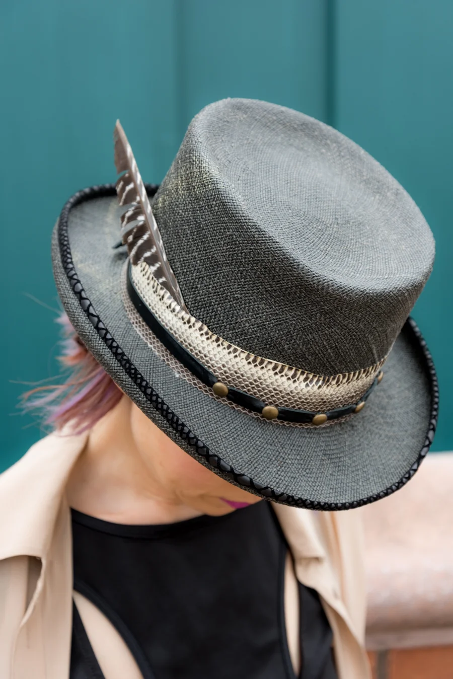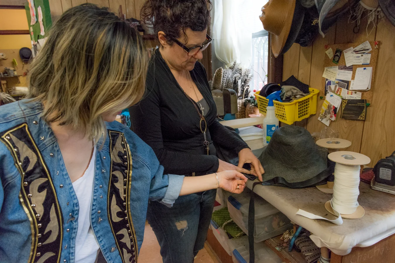 先日、アトリエにお邪魔して、夏のオーダーメイドハットを製作していただきました。頭のサイズを測り、自分の好きなデザインと、素材を相談して、世界に一つだけの私の帽子を作ってくれたんです。今回使用した素材は、上の写真で私が被っている麦わら帽子。これは、1950年代のビンテージの麦わら帽子なんです。これをリメイクし、私のロックなサマーハットが出来上がりました。夏なんで、麦わら帽子が欲しかったんですが、リゾートっぽくとか、カジュアルすぎたりしない、ロックな帽子が欲しかった私は、もう、この帽子にメロメロです。ロックな麦わら帽子ってあんまり見ないですもんね。大満足です。